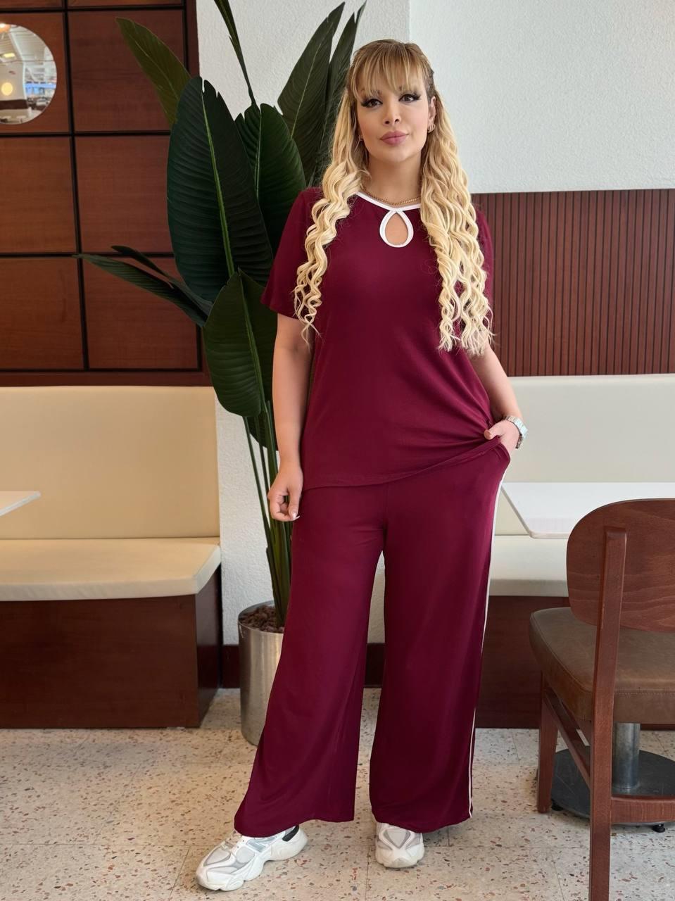 Yuvarlak Yaka Detaylı Bordo Eşofman Takımı